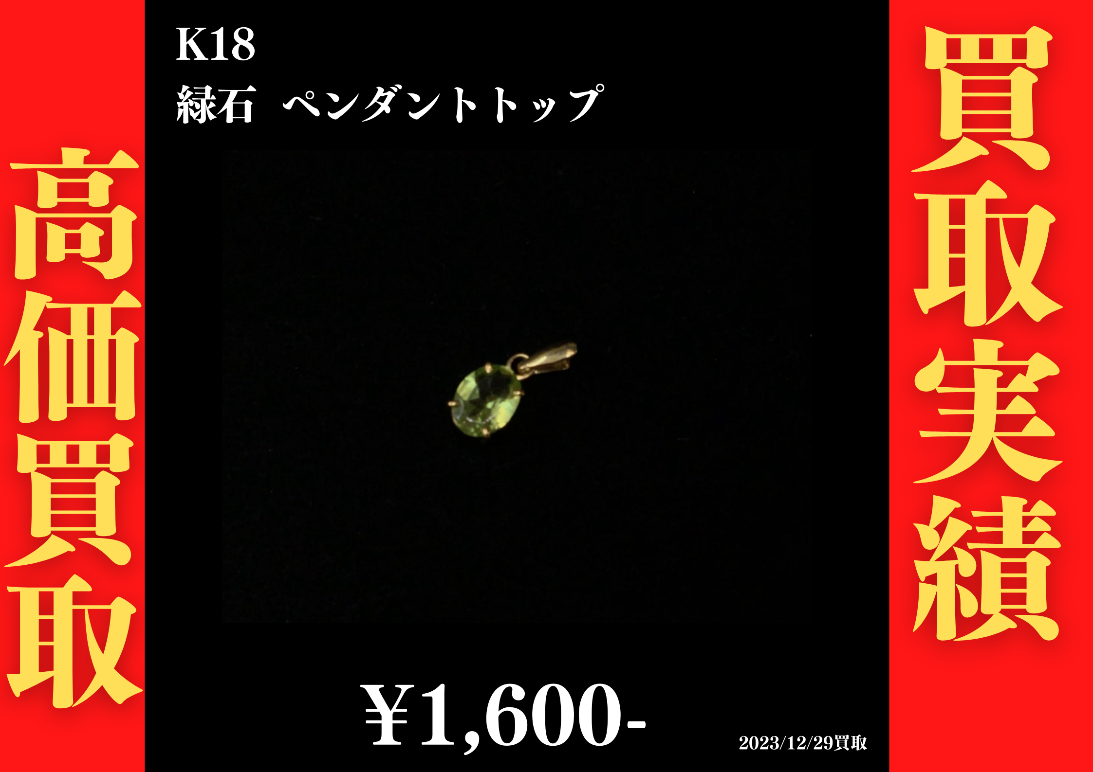 K18 緑石 ペンダントトップ 1,600円でお買取させていただきました!